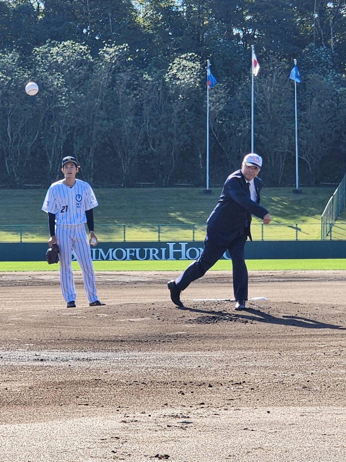10/17(金)、中田 雅喜・松阪市教育長による始球式で開幕。(ドリームオーシャンスタジアム)