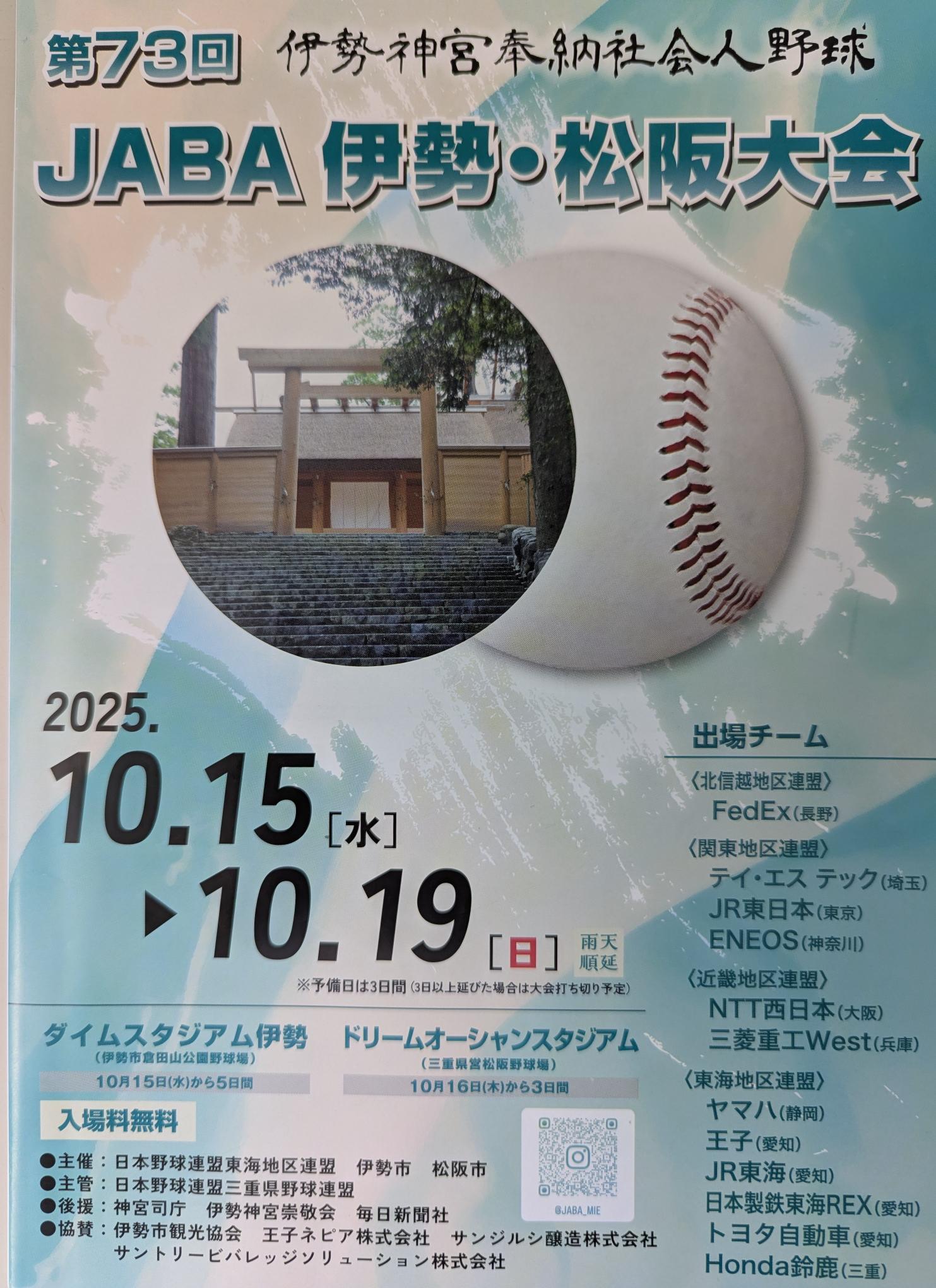 『伊勢神宮奉納社会人野球 第73回JABA伊勢・松阪大会』)(ダイムスタジアム伊勢、ドリームオーシャンスタジアム)
