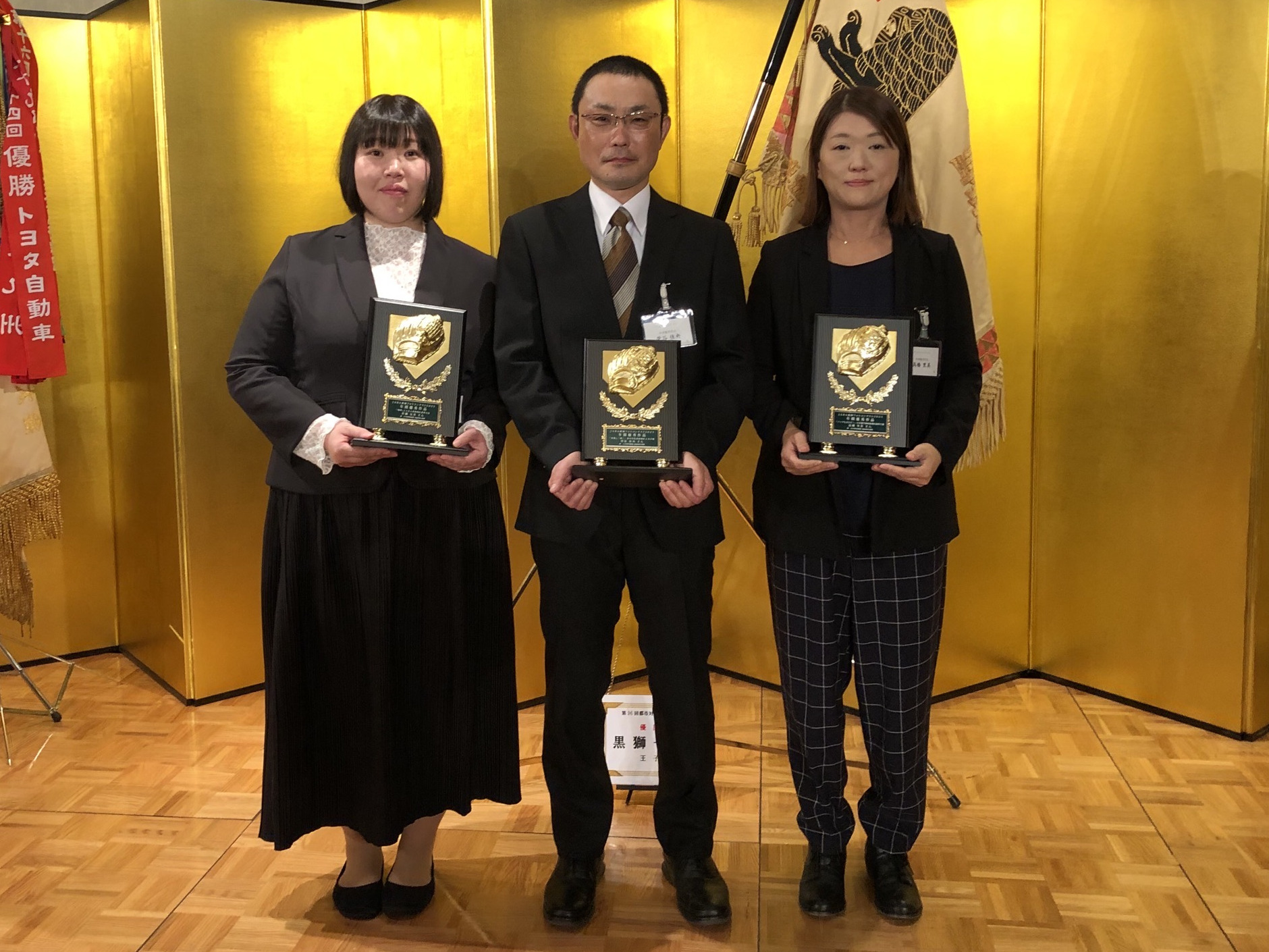 左から優秀監督賞・湯浅貴博監督(王子)、同・梶山義彦監督(三菱自動車岡崎)、同・申原直樹監督(ヤマハ)
