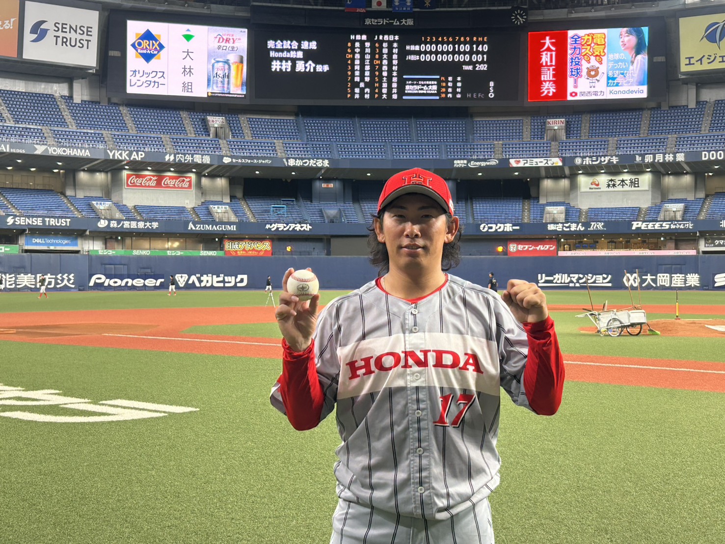 第50回社会人野球日本選手権大会は4日、京セラドーム大阪で1回戦があり、Honda鈴鹿の井村勇介投手がJR西日本戦で完全試合を達成しました。第43回(2017年)大会でJR東日本東北・西村祐太投手が記録して以来8年ぶり、大会史上2人目の快挙です。